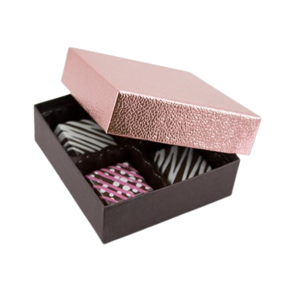 Order Metallic Rose Embossed Dark Chocolate Base Rigid Candy Boxes from Saga Printing today and give your sweets the packaging they deserve!
