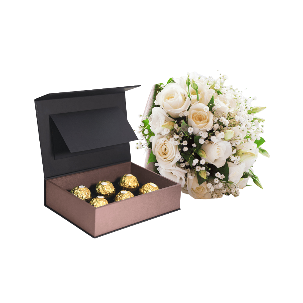 Make your candy look elegant and luxurious with our Metallic Rose Embossed Dark Chocolate Base Rigid Candy Boxes. The shiny metallic rose lid matches perfectly with the dark chocolate base. This contrast makes the box look premium and stylish. It is a great choice for sweets, chocolates, and other special treats.