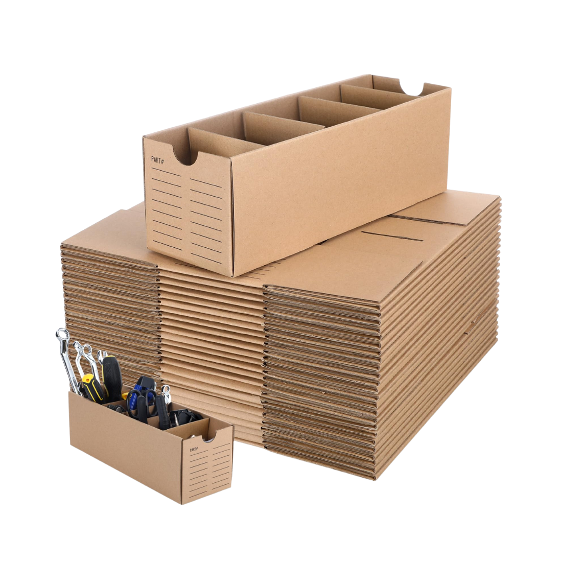 Keep your workspace clean, efficient, and well-organized with Parts Bin with Dividers by Saga Printing. Designed to store small parts, tools, and hardware neatly, these bins are ideal for warehouses, workshops, retail stores, and assembly lines. Made from high-quality corrugated material, they offer superior strength and durability while keeping your components easily accessible and safe.